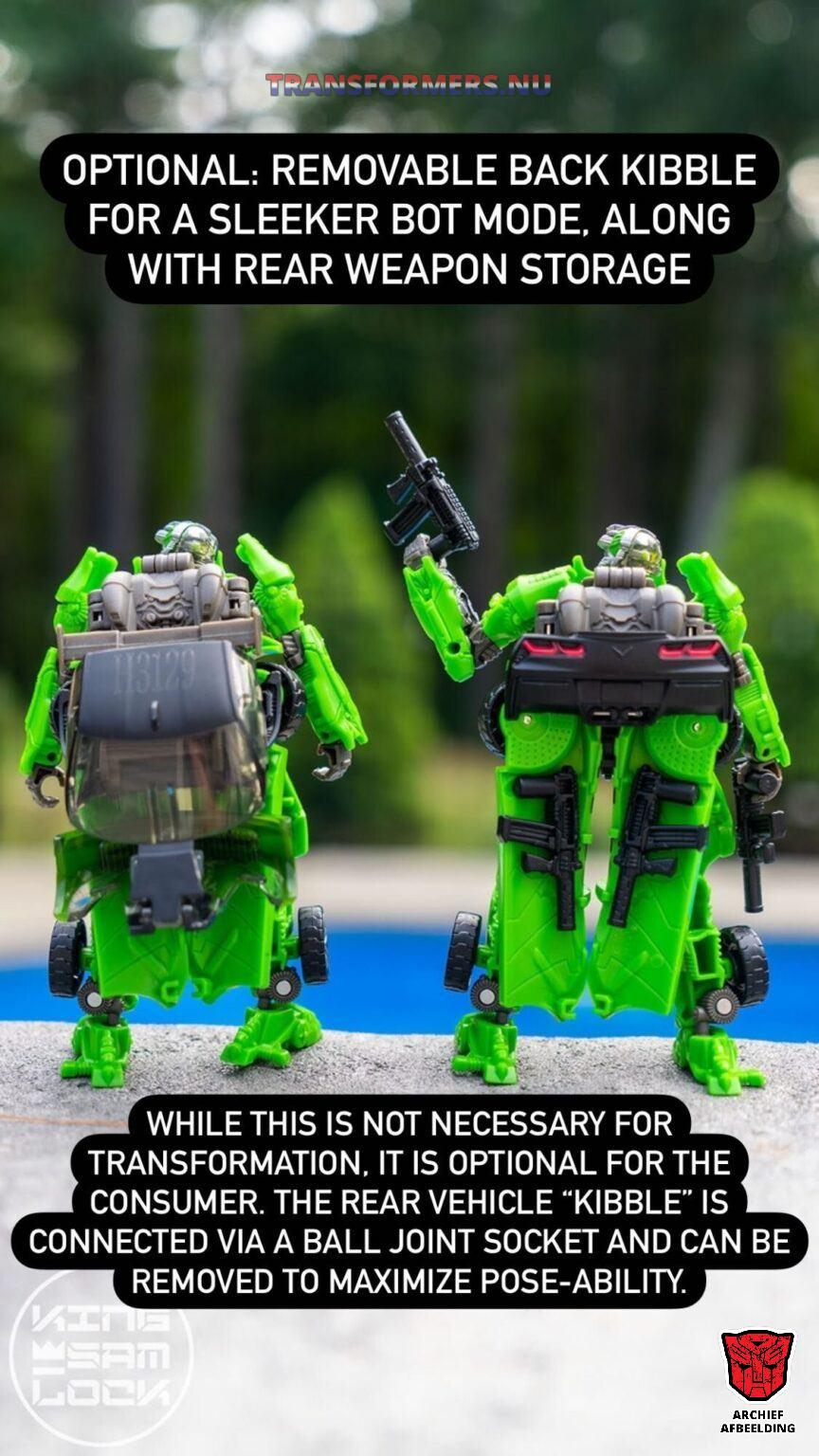 En dan hebben we nog ‘Ut Rut. Eindelijk ziet hij er uit als in de film, en niet alsof hij een goedkope repaint is van één van de meest matige Bumblebee figuren ooit. Sterker nog, hij is nog niet eens een goedkope repaint van Lockdown, terwijl hij dat wel was in de film. Zo te zien is zijn transformatie grotendeels helemaal anders. Met zijn wielen en zijn hood op allemaal nieuwe, spannende plekjes. Hij heeft er zelfs nog een mooi spoilertje bij gekregen.