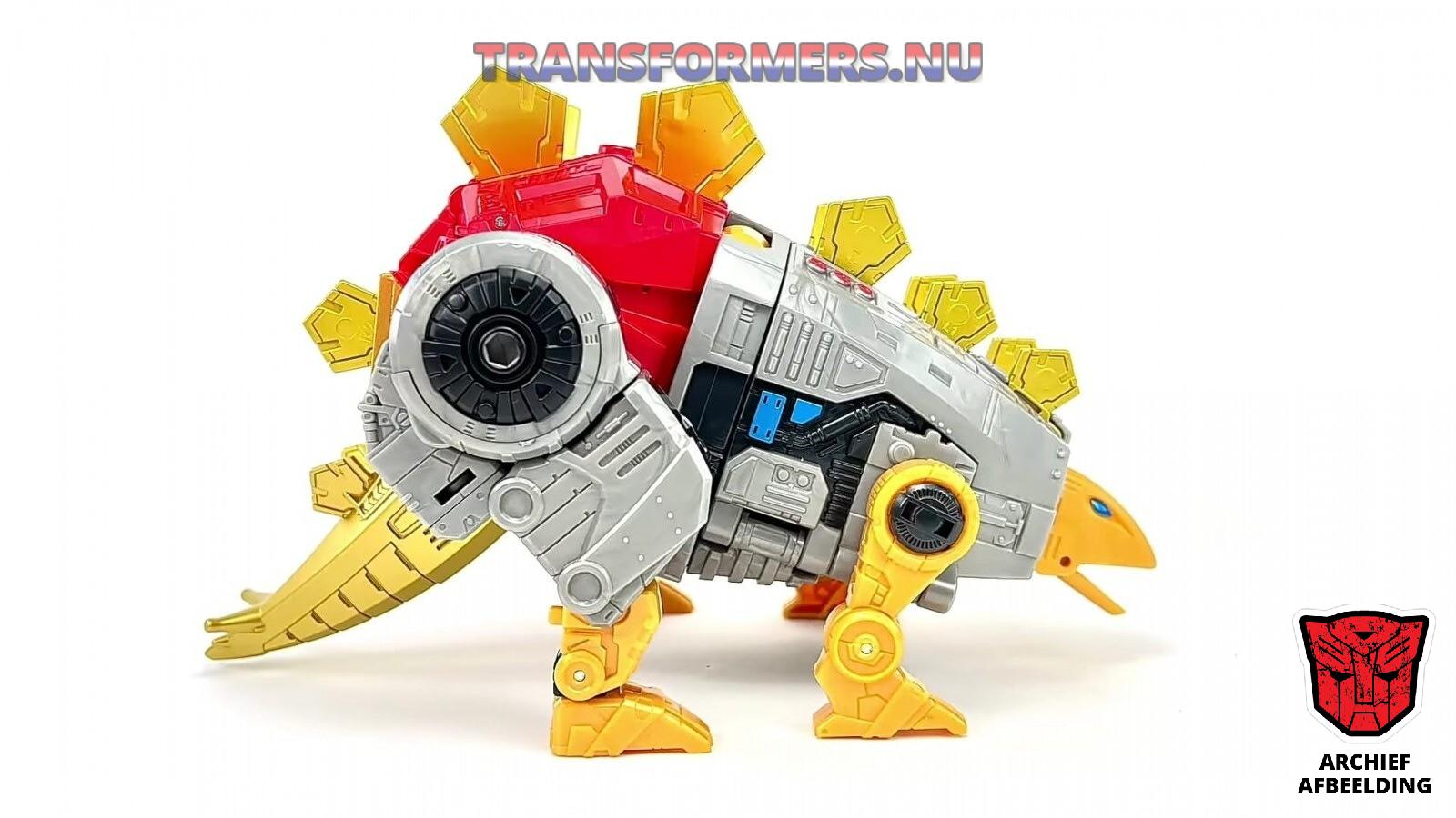 februari 7, 2023 om 11:07 am#35882En we hebben beeld van Snarl! Hij heeft zijn kontje nogal in de lucht maar al met al is hij een hele behoorlijke Stegosaurus. Geen idee of hij ook komt met dat zwaard, aangezien de rest van de Dinobots op deze foto ook opeens allemaal zwaarden hebben. Het kan dat het een third-party toevoeging is, of misschien komt Snarl met een setje zwaarden om uit te delen.