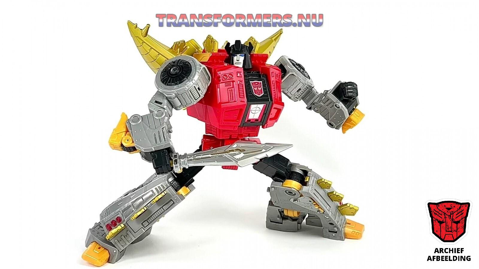 februari 15, 2023 om 11:40 am#35986PrimevsPrime heeft weer eens in een Vietnameese vuilnisbak gerommeld en zo hebben we onze eerste review van Leader Class Snarl. Die dus komt met geen geweer, maar een zwaard. En inderdaad, hij mocht wel een likkie extra gouden verf gebruiken als je Snarl zo naast de rest ziet.
